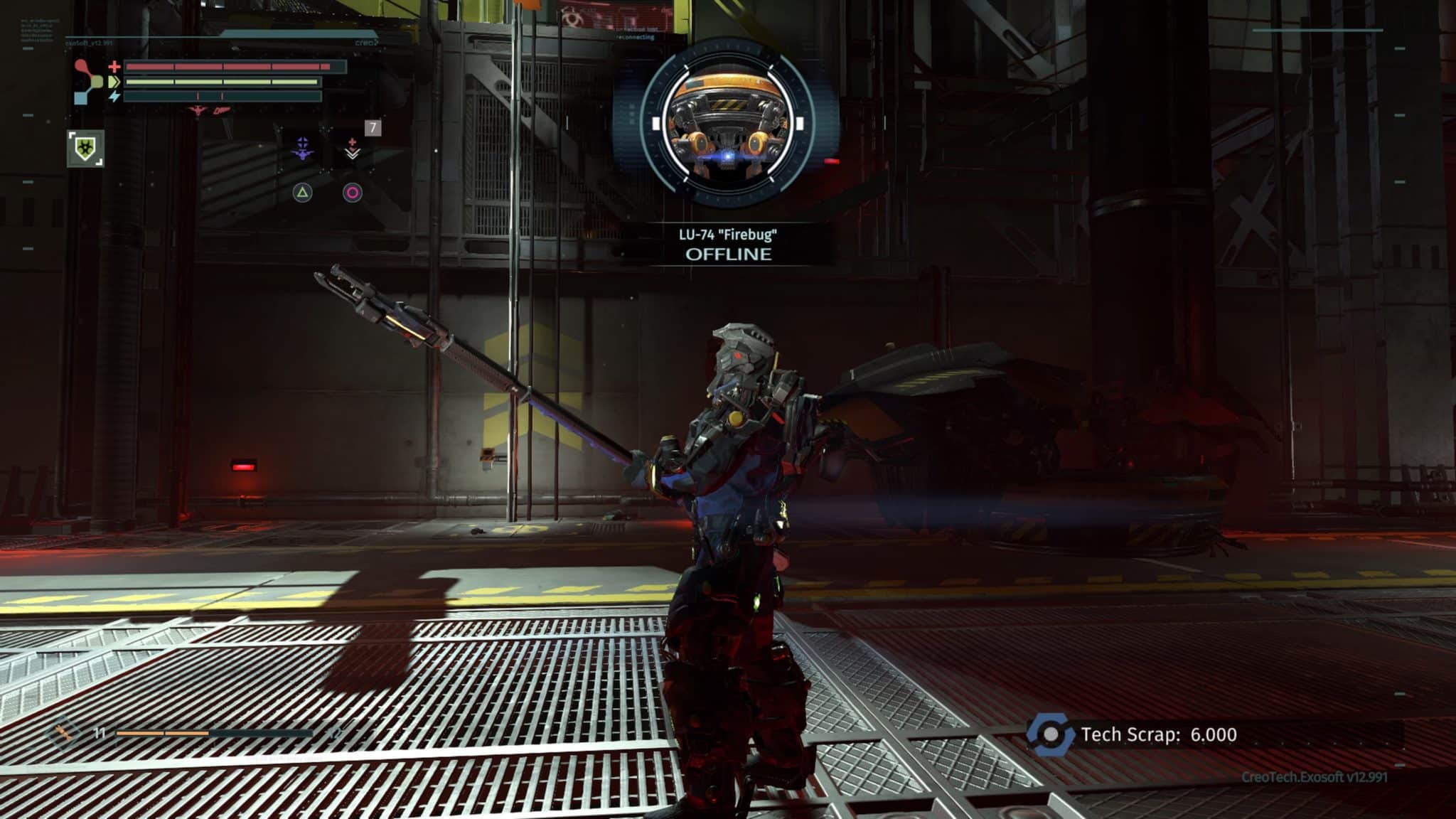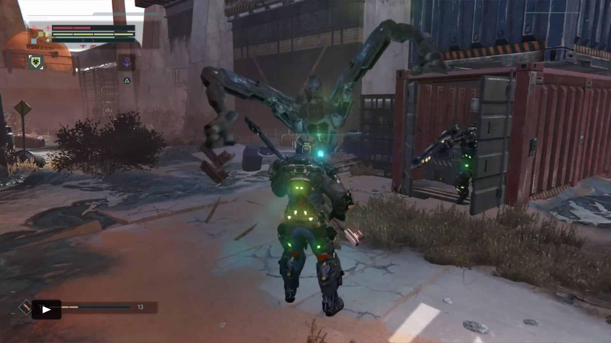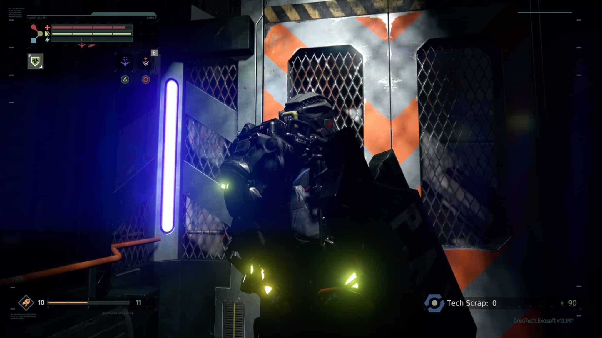 We rejoin Warren as he regains consciousness in a scrap yard, scheduled to be “recycled.” CREO has undergone some sort of cataclysm, rendering his Rig only partially functional and thrusting Warren into the single worst new job orientation ever. The player is ushered through an introduction of the basic controls as you are tasked to find a replacement battery for your Rig. Conveniently, even without full functionality, the Rig affords Warren not only the ability to walk once more, but also the strength and speed to fend off his attackers.